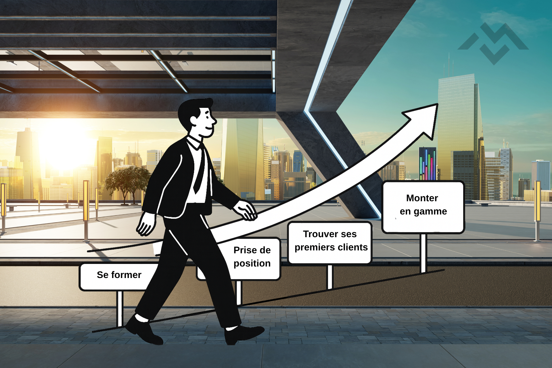 Se former ➜ Se positionner ➜ Trouver ses premiers clients ➜ Monter en gamme.